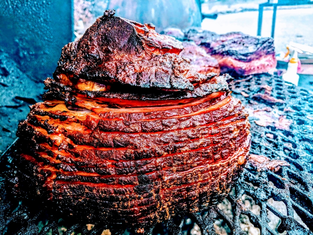 We smoke our Hams with FOUNDERS KBS BARREL CHUNKS, Cherry and Oak……glaze it, torch it…wrap it. Bam!!! Good to go.